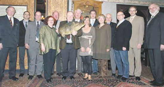 Zahlreiche Gäste konnte Hans-Günther Zemke, Vorsitzender des Bürgervereins Eversten zum traditionellen "EBER"-Treffen mit zünftigem Wildschweinessen im Hotel Wöbken begrüssen. Im Mittelpunkt des Abends stand natürlich der Eber, das Wappentier der "Ritter von Everse" nach denen der attraktive Stadtteil in Oldenburgs Westen benannt ist. Über die starke Wildschwein-Population und die Jagd auf Schwarzkittel berichtete in einer launigen Ansprache der Stadtoldenburger Kreisjägermeister Ferdinand Wehage. Für Künstler Siegfried Fuhrmann, talentierter Zeichner der neuen Kunstmappe Oldenburg Eversten gab es den "EBER-Pikal" des Bürgervereins aus den Händen des Vorsitzendne. Zemke und sein Vorstandskollegen Werner Renken und Jan-Dieter Heß freuten sich über die rege Beteiligung von Gästen aus Politik und Wirtschaft.