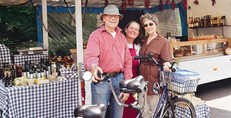 Der Spaß kommt allerdings auch nicht zu kurz: Mit anderen Kunden hat Heike Birkholz bereits auf deren Tandem gesessen. Ehepaar Schanz aus Friedrichsfehn fährt regelmäßig mit seinem Zweier-Fahrrad zum Markt nach Eversten, „um das beliebte Steinofenbrot der Landbäckerei Bremer und ab und zu Oliven und Fisch zu kaufen“. Da die Feinkostverkäuferin immer schon mal auf einem Tandem sitzen wollte, lud Hartmut Schanz sie spontan ein, gemeinsam eine Runde zu drehen. „Sowas ist nur auf dem Markt hier möglich“, meint Schanz. Und da sind sich alle einig: Das Marktflair in Eversten ist etwas ganz Besonderes.